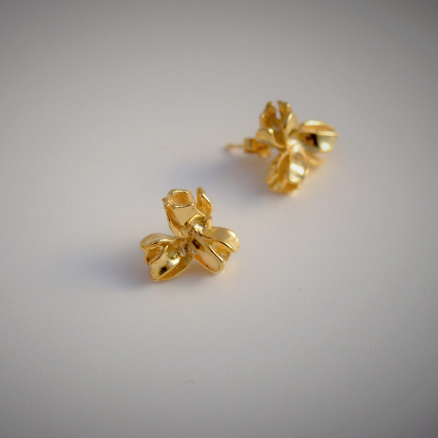 Yellow Gold or Rose Gold plated on Sterling Silver, stud Earrings.These Triple "Buds" are originally delicately carved from my own wax carving then cast in Silver.